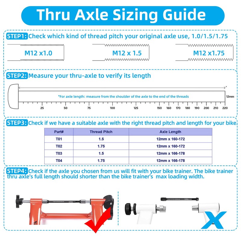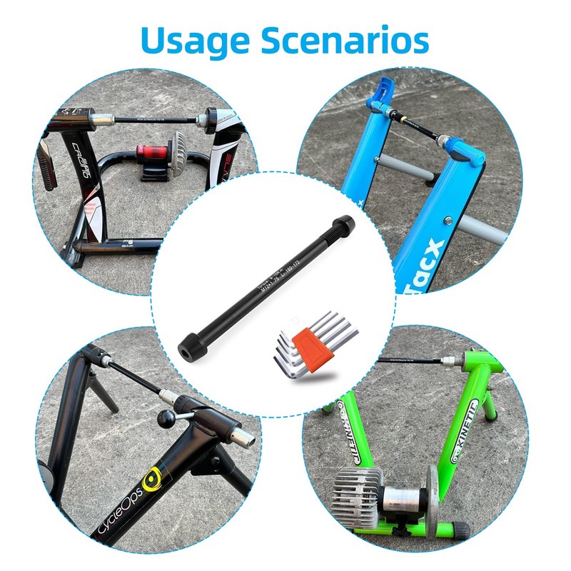 - 【Thru axle bike on Trainer】We're sure many riders have recently encountered the problem of picking out a bike with a straight-through axle only to find that they can't mount it to a bike trainer. The easy-to-mount and removable design of our bike trainer axle simplifies the installation process!