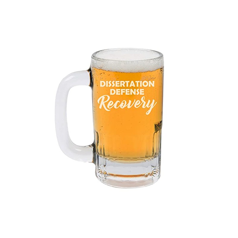 12oz Beer Mug Stein Glass Dissertation Defense Recovery Funny Phd Graduation Grad Gift Student