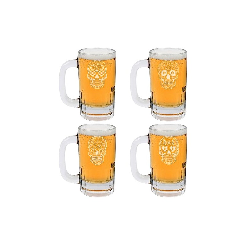 12oz Beer Mug Stein Glass Set of 4 Gift Sugar Skull Collection
