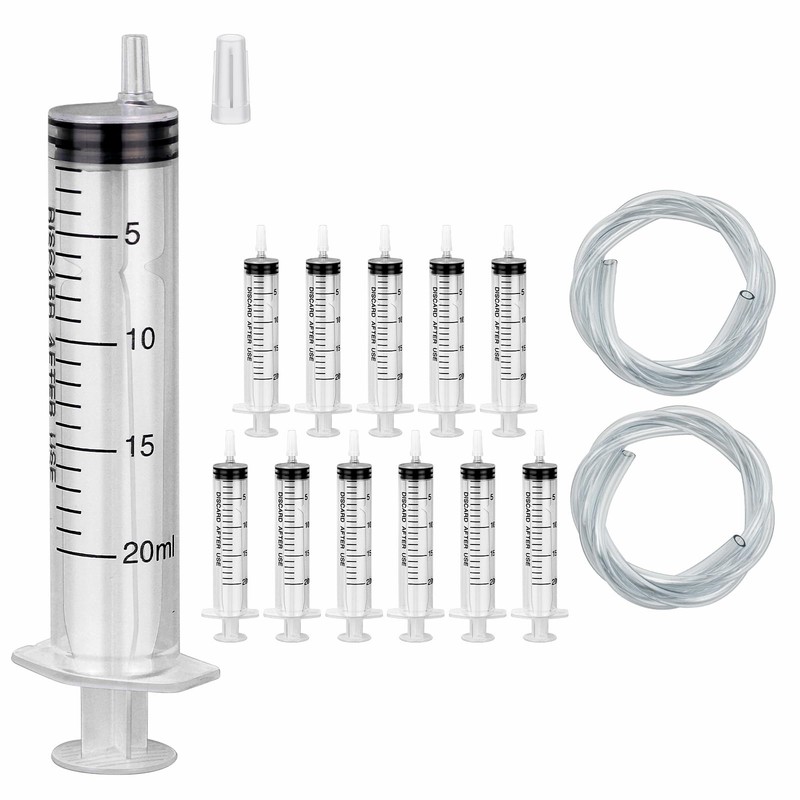 - Package Included: 12pcs 20ml syringes without needle with cap + 2pcs 50cm transparent plastic tube.