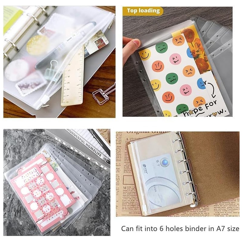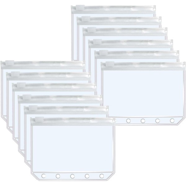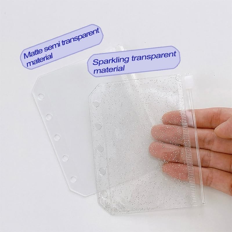 12Pcs 5-Hole Glitter Binder Pockets, A5 5 Holes PVC Binders Pouch with Zipper, A5 Binder Pockets 5 Holes Clear Zipper Pouch Folders,Clear