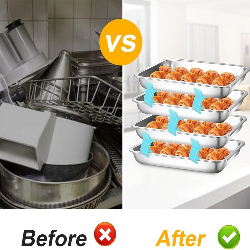 - Easy to Use: Just attach it to the side of the tray. Easily stack multiple trays, provide a stable support for your baking trays, and make your kitchen neat and organized.