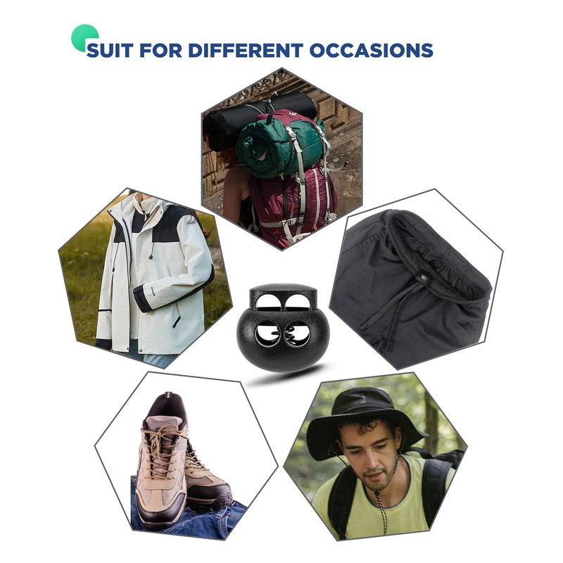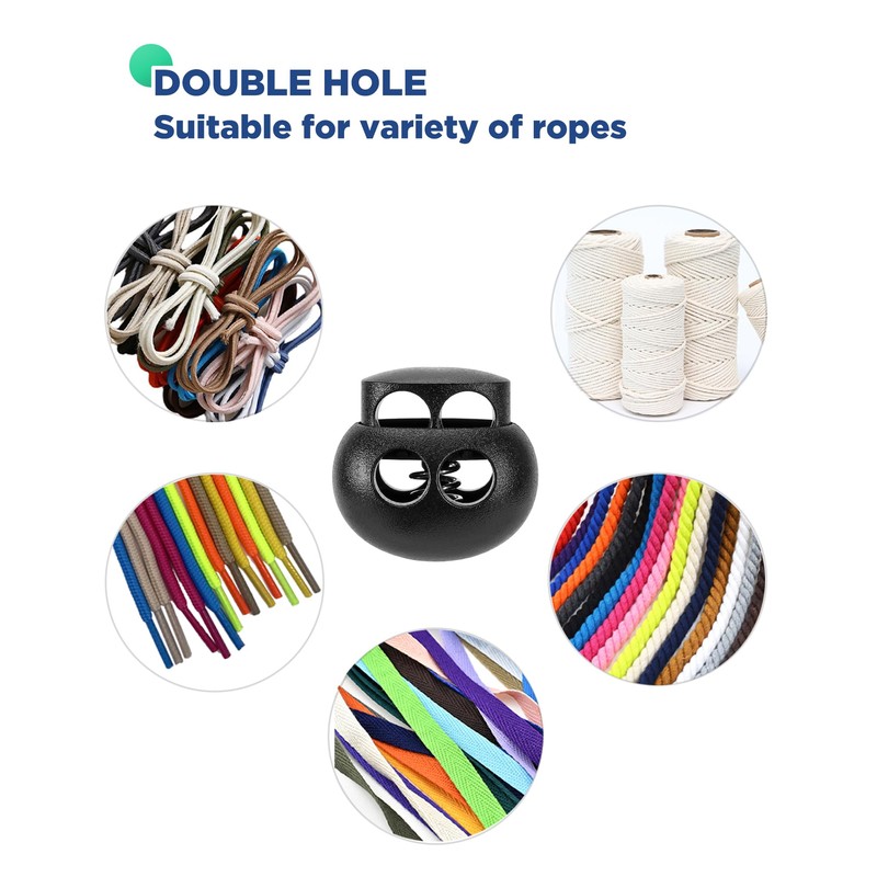 - Premium Double-Hole Design: Crafted with premium POM material, our double-hole cord locks provide enhanced durability and flexibility. The two-hole design ensures secure fastening for multiple cords, making it perfect for outdoor and everyday use