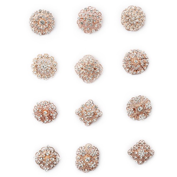 12Pcs Crystal Brooches Set - Small Size Flower Design (Rose Gold)