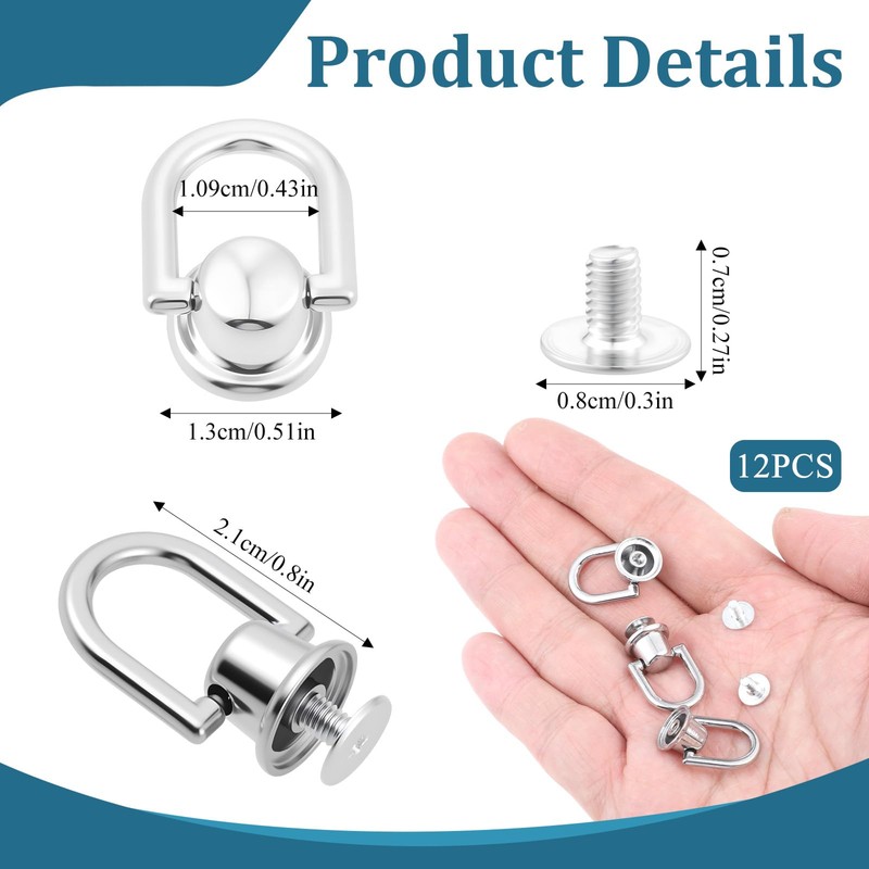 - Package List: You will receive 12 360-degree rotatable D-rings and 12 matching screws, which are sufficient in quantity to meet your different leather craft DIY styles and easily match your accessories.