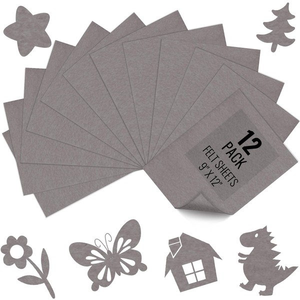 12PCS Dark Grey Felt Fabric Sheets 9" x 12" - 1.6mm Thick Soft Felt for Craft Sewing DIY Patchwork Art Projects Decorations