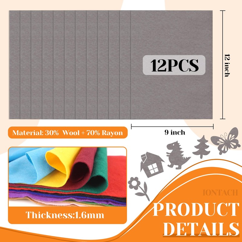 • 12-Pack Felt: Each felt sheet measures 9" x 12" (22 x 30cm) and is 1.6mm thick. Suitable for a variety of creative and DIY projects