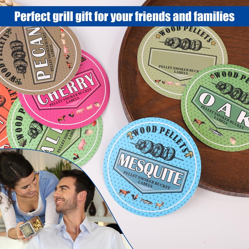 12pcs Grill Pellet Labels, 3.94x3.94 Inch Smoker Pellet Storage Labels Easy-to-Identify Pellet Label Stickers for Wood Pellet Storage Container Grill Accessories for Pellet Grills
