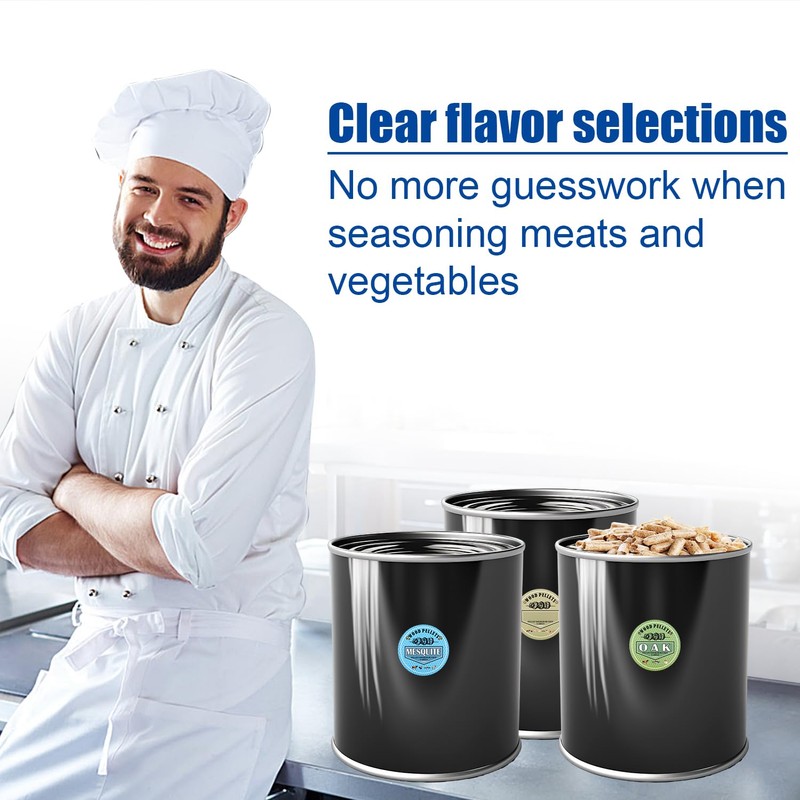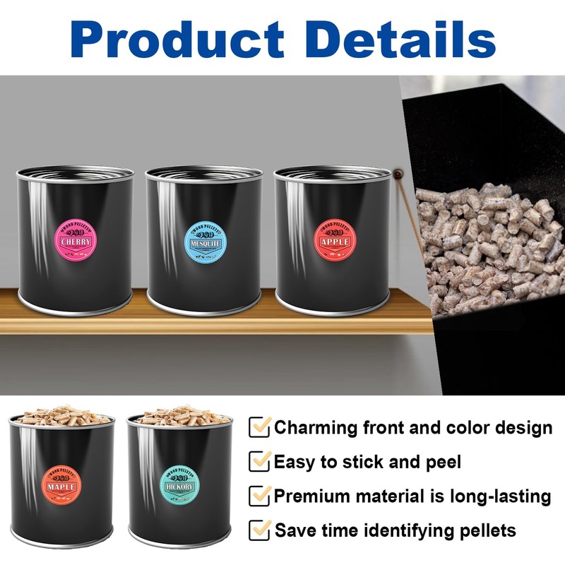 - Product Size: Each grill pellet label measures 10x10cm/3.94x3.94 inch, and the content is clear and easy to identify. Suitable for most smokers' pellet storage containers.
