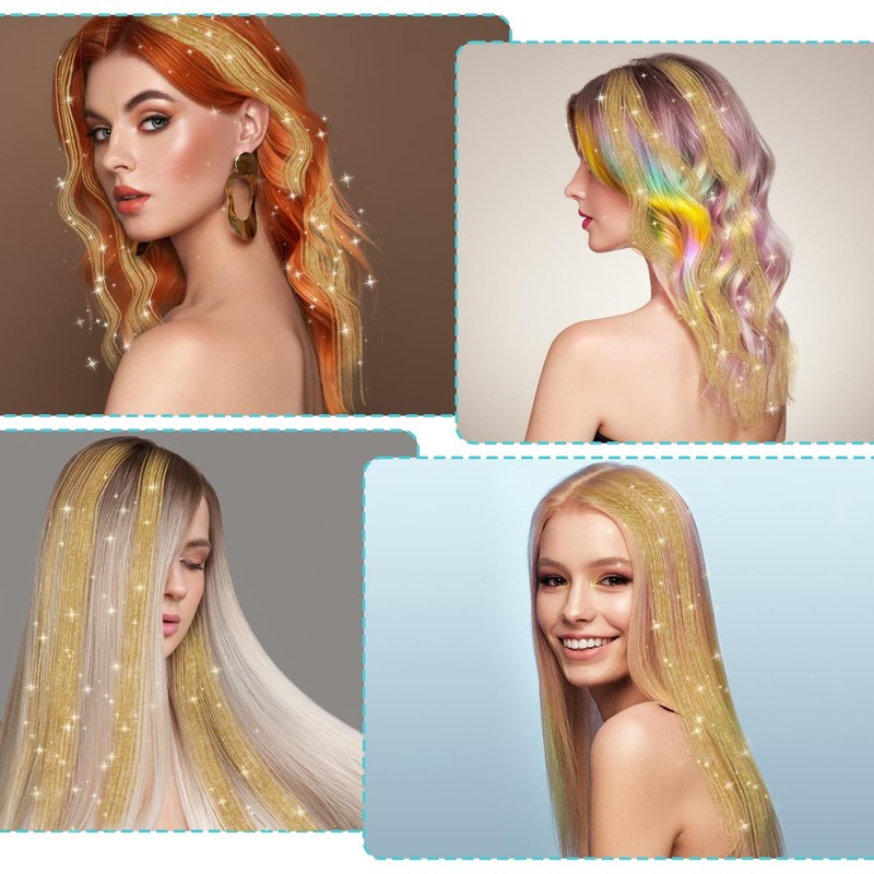 • [Perfect for Any Occasion]: Our glitter hair extensions are ideal for various events, including festivals, daily outfits, cosplay, birthday parties, weddings, Christmas, and Halloween. Capture stunning photos while standing out in the crowd, making every moment memorable.