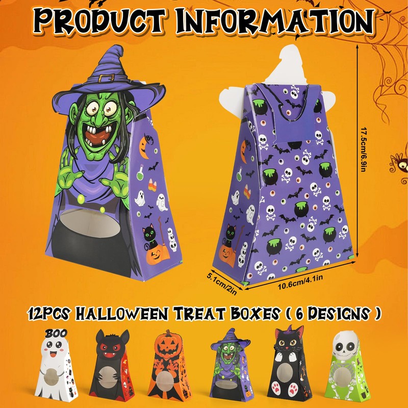 - What’ll You Get: This set includes 12 halloween cookie boxes in 6 unique designs, with 2 pieces of each style. Plenty of quantity for parties, classroom events, trick-or-treat giveaways, or festive table decorations.