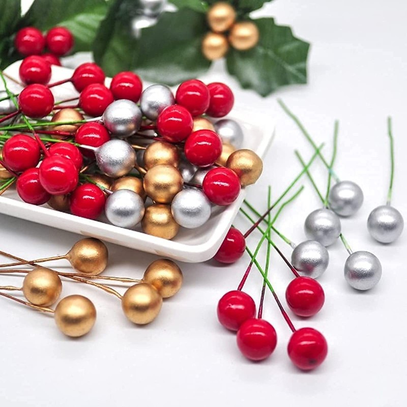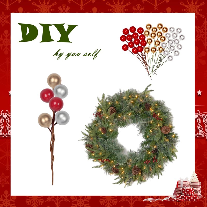- 🎄[Vivid Real Looking] - Our artificial berries are all made of high-quality plastic and the leaves are made of silk.They are delicate and lifelike, they look like real holly berries,exquisite and lifelike.Paired with iron stems for easy tying. Durable, waterproof, and reusable.
