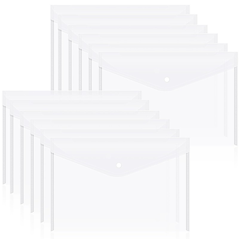 12pcs Plastic Filing Envelopes with Snap Button Closure ,Clear Document Folders for Letter A4 Size Files ,Poly Folders,for School and Office Supplies(White)