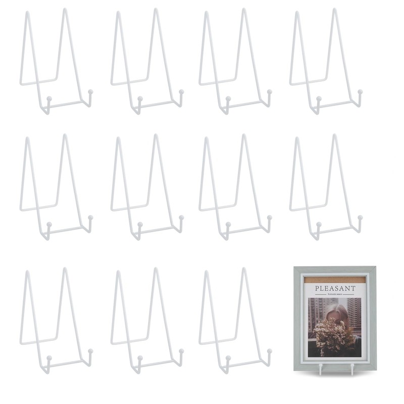 12pcs Plate Stand for Display, 6 Inch Metal Plate Holder Easel Display Stand Tabletop Picture Stand, Book Display Stand Photo Frame Holder Stands for Decorative Plate Dish Tabletop Art Postcard(White)