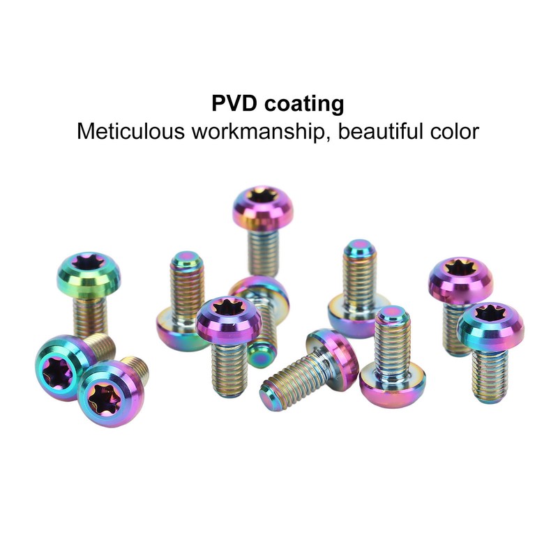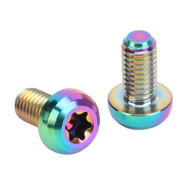 1、High Quality Material: Made of high quality alloy steel material, sturdy and durable, not afraid of corrosion and weathering, it has long service life. 2、Small Size: Bike brake disc screws adopts small size design, which is convenient for you to install and disassemble, saving you time and labor. 3、Widely Application: It is suitable for fixing discs and bicycle frame to make your bicycle work normally. Suitable for mountain bikes, road bikes, fixed gear bikes, etc. 4、Accurate Threads: The screws are accurate threads, which are firmly connected, not easy to fall off, and the overall finish is high. 5、Multi Functional: The bike disc rotor bolts have powerful function, which is used on bicycle disc rotor, can also add color to the bicycle.