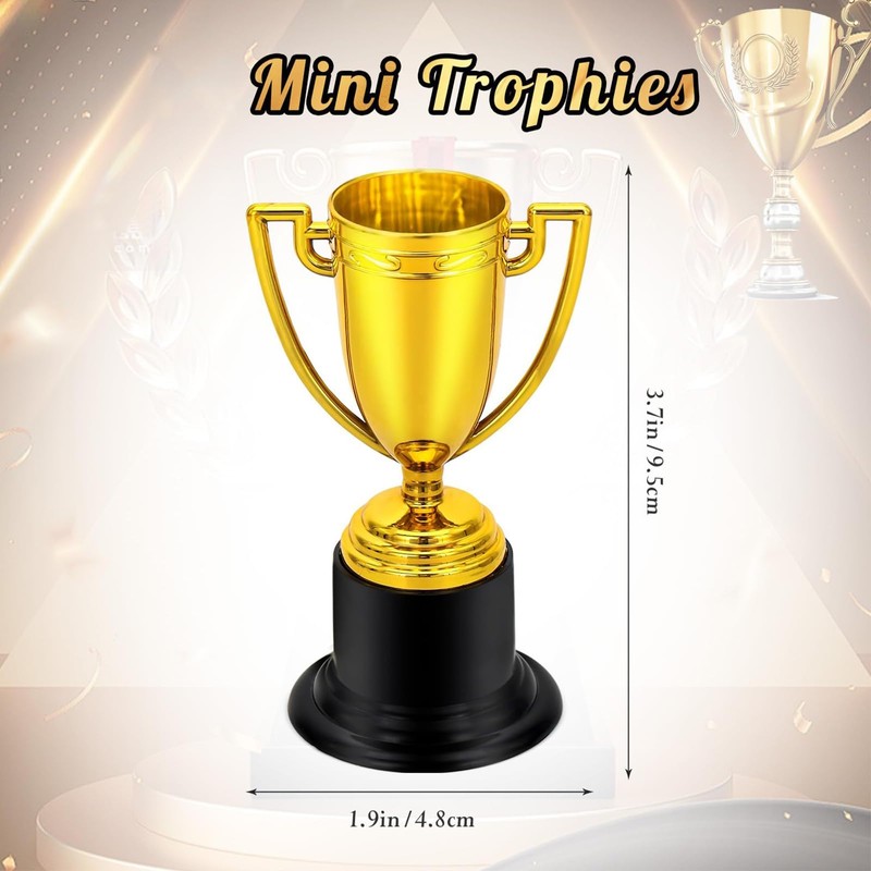 - The Best Gift: These mini trophies and medals are perfect for party gifts, especially as football trophies, dance competitions or birthday game prizes. Encourage kid to take good care of their trophy and use mini trophy as a symbol of their achievement, whether it's winning a sports competition, a spelling bee, or any other achievement.