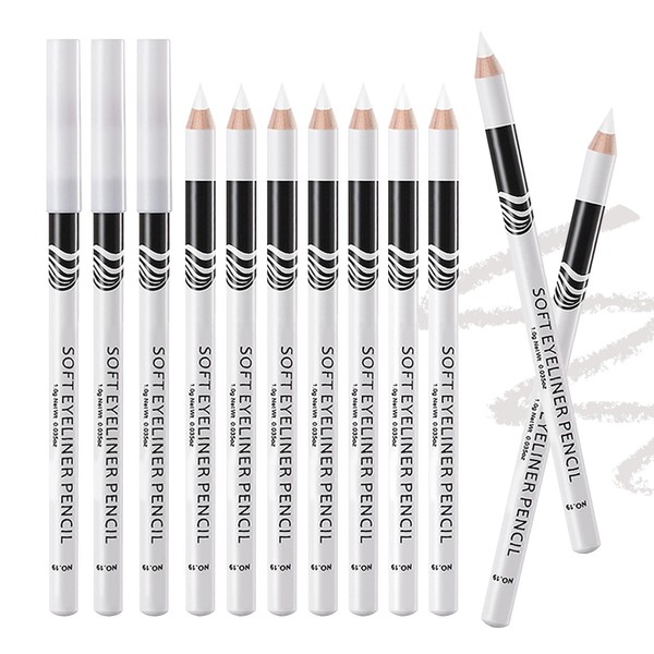 12PCS White Eyeliner Pencil, Highly Pigmented Waterproof Eyeliner Pen, Multi-...
