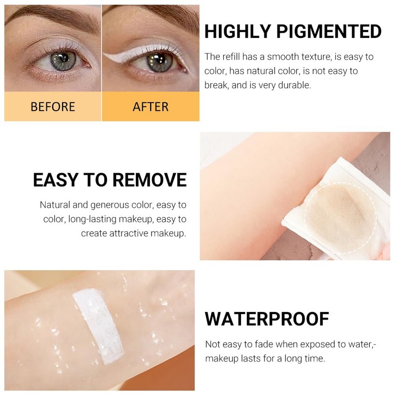 - Enjoy long-lasting eyebrow perfection with our professional-grade makeup refills. The formula is both tough and comfortable, providing a waterproof and smudge-proof finish that lasts all day. Say hello to flawless brows that withstand any challenge, keeping you looking your best from morning to night.