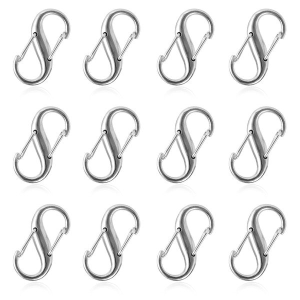 12pcs Zipper Lock Clips, Double Opening Zipper Lock Replacement Pulls Zinc Alloy Clips S Shaped Zipper Locks Anti Theft for Luggage Suitcase Purses Backpacks (Silver)