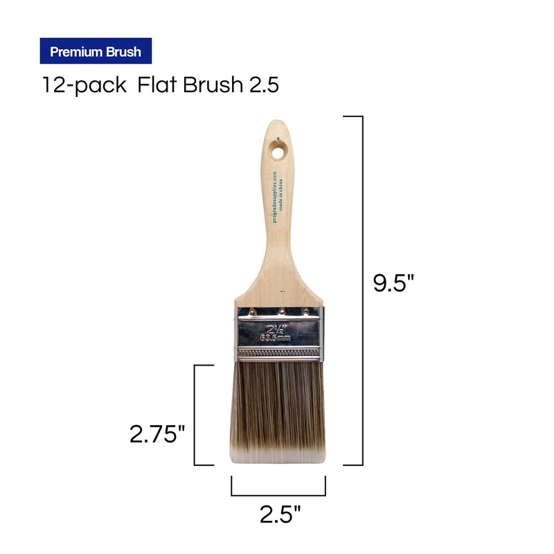 - This 12-pack of 2.5" flat brushes is great for all different professional and home painting projects.