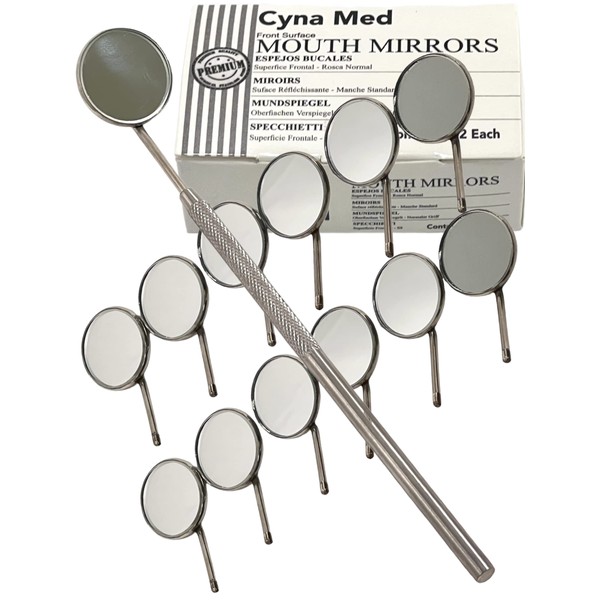 12PK Dental Mirror #4 Front Surface with Handle Stainless Steel Oal Care Mouth Inspection Instruments (12PK with Handle)