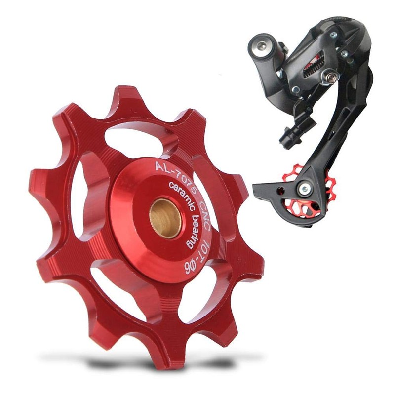 Item Type:Bicycle Derailleur PulleyCondition:100% Brand NewMaterial: Aluminum AlloyWeight: Approx. 15gColor: as picture shownOptions:10T, 12T, 16T 10T Size: approx. 4 x 4 cm.