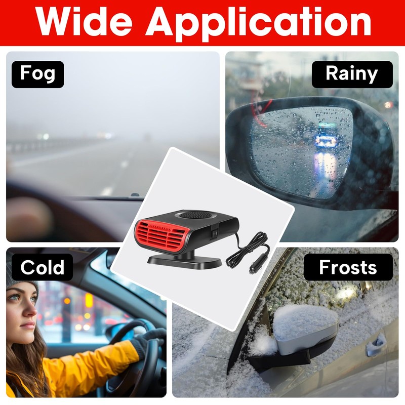- 2-in-1 Heating And Cooling Design: This car heater has two setting modes for heating and cooling, you just need to change the switch and hot or cool air will blow out instantly according to your needs. Keeps your windshield free from fog and frost and gives you a clearer driving view.