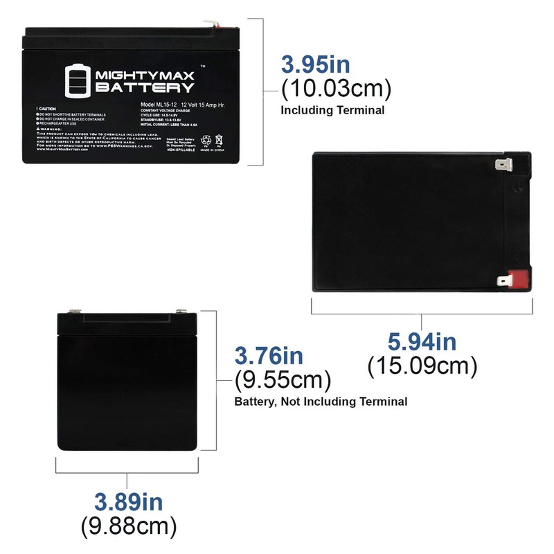 - Dimensions: 5.94 inches x 3.89 inches x 3.95 inches. Terminal: F2. Listing is for the Battery only. No wire harness or mounting accessories included.