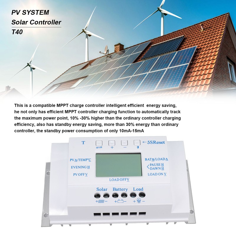 12V 24V Solar Controller Smart Solar Charge Controller MPPT T40A with Display Screen