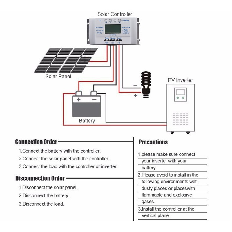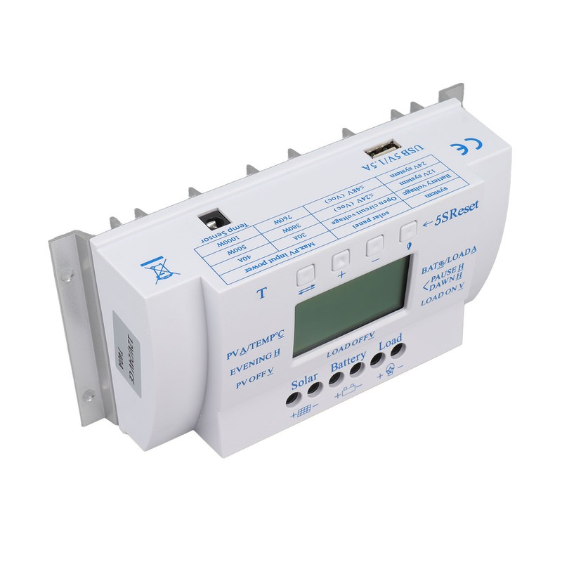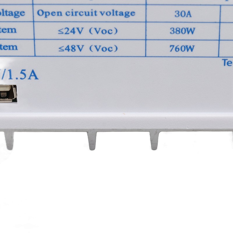 1、Low Power Consumption: The power supply adopts ultra low power consumption chips to reduce static standby power consumption and energy consumption. 2、High Efficiency: This is a compatible MPPT intelligent efficient charge controller, it has efficient charging function to automatically track the maximum power point, 10%‑30% higher than the ordinary controller charging efficiency. 3、Real Time Display: All kinds of real time data are displayed on a display screen, which is convenient for users to check at a glance. 4、Good Heat Dissipation: This solar charge controller is used for USB 5V output for mobile phone and fan charging, dual period control mode, and good heat dissipation performance. 5、Excellent Performance: This solar controller is made of premium aluminum and ABS, it is sturdy and durable, with excellent performance and long service life.