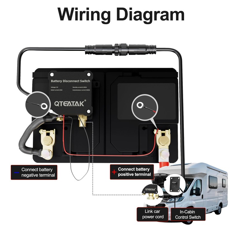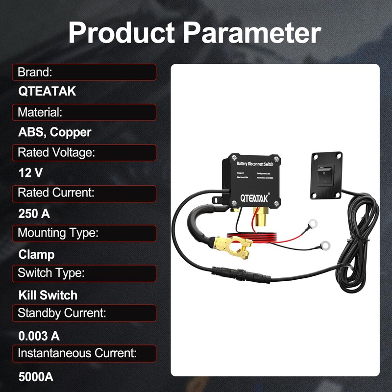 - Power Cut-Off Anytime: With a boat rocker panel switch and a 9.84FT cable, this feature allows for quick power cut-off without opening the hood; It can be operated from inside the car, saving time and reducing unnecessary power loss (minimizing battery self-discharge and leakage), extending the vehicle's range