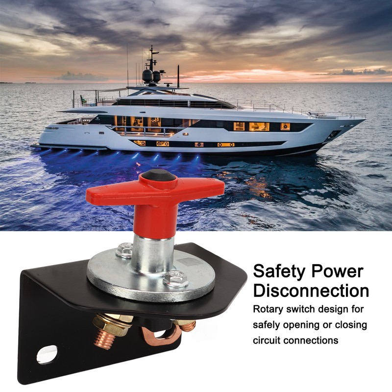 1、Safety Power Disconnection: The battery disconnect switch is designed as a rotary switch, which is used to safely open or close the circuit connection. 2、Lockout Plate: Battery kill switch has a locking plate, it is used to lock the rotary switch on the panel to prevent accidental opening or closing, 3、Wide Application: The battery disconnect switch has a wide range of applications and is suitable for automobiles, automobiles, ships and RVs. 4、Durable Material: The battery switch is made of waterproof metal and copper, with good sealing performance. The heavy duty fixed die casting handle can be used in harsh environments. 5、Simple Operation: Battery cut off switch is easy to install, easy to operate, will not stuck, can be used safely, perfect replacement for you.