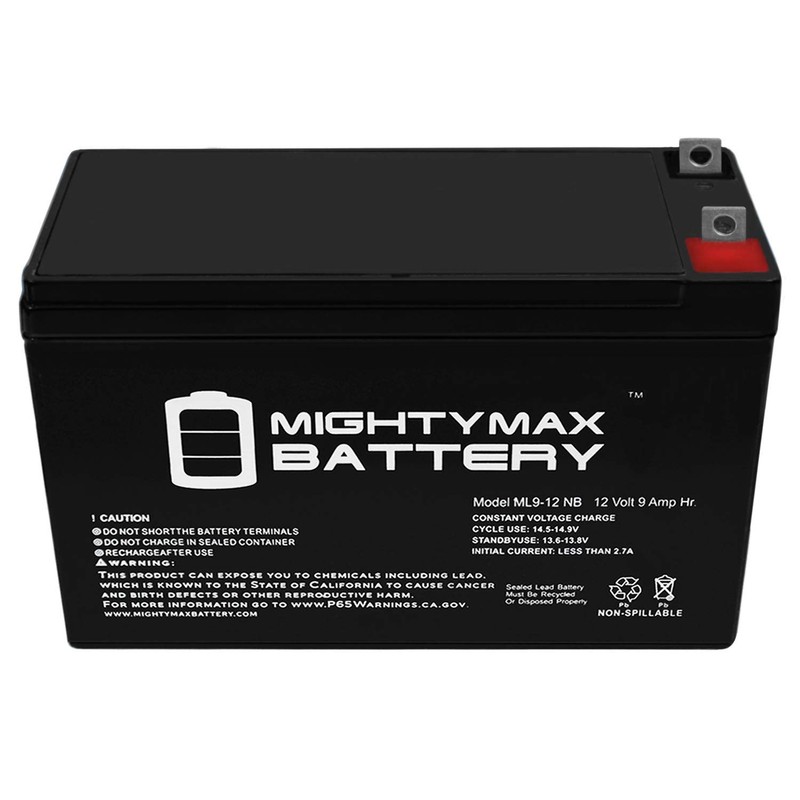 Delivering power when you need it, the Mighty Max ML9-12 12 Volt 9 AH uses a state of the art, heavy-duty, calcium-alloy grid that provides exceptional performance and service life in both float and cyclic applications. The ML9-12 is an Absorbent Glass Mat (AGM) technology with a valve regulated design, that can be used in enclosed and indoor environments without leaking or maintenance, providing a superior performance for thousands of models. Mighty Max SLA batteries are utilized in a wide variety of applications including; Consumer Electronics, Electric Vehicles, Engine Starters, Golf Carts, Hunting, Lawn and Garden Tools, Medical Mobility, Motorcycles, Power sports, Portable Tools, Solar, Toys and Hobby, Access Control Devices, Emergency Lighting, Security and more. **Specifications:** Voltage: 12 Volt Amperage: 9 AH Chemistry: SLA, AGM Terminal: Nut and Bolt **Battery Dimensions:** 5.94 in x 2.56 in x 3.94 in Weight: 5.17 Lbs **Warranty** 1 Year Genuine Mighty Max battery Product
