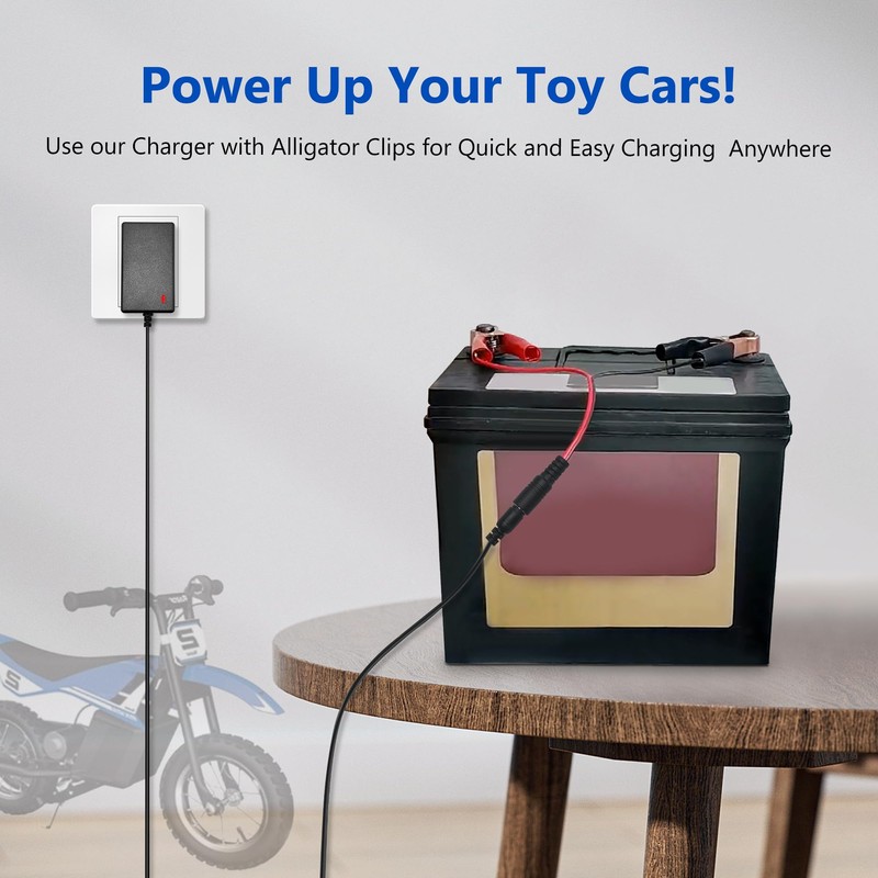 - Alligator Clips for Easy Battery Connections: Includes durable, premium-quality alligator clips for a secure connection to your battery, ensuring safe and efficient charging without the need for specialized connectors(also suitable for other 12v children's electric toy car batteries and 12v standard sealed lead-acid batteries, not suitable for lithium batteries)