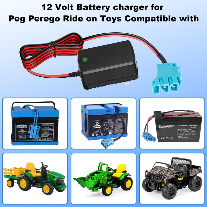 - Compatibility:12V Battery Charger for Peg Perego 12 Volt Battery Charger 2606FR, IAKB0501, IAKB0502, NP12-12,DJW12-12HD,CF12V12-T,John Deere Ground Force Tractor,John Deere Gator XUV Polaris RZR 900 Powered Ride On Toys