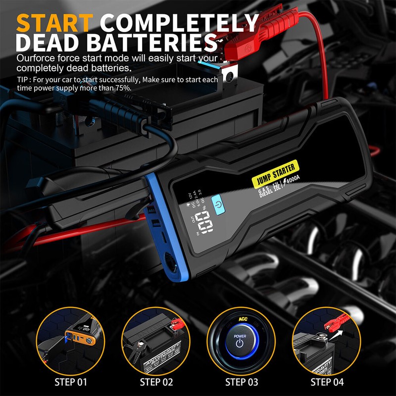 12V Car Jump Starter Jumper Booster Power Bank 4000A Battery Charger LCD Display