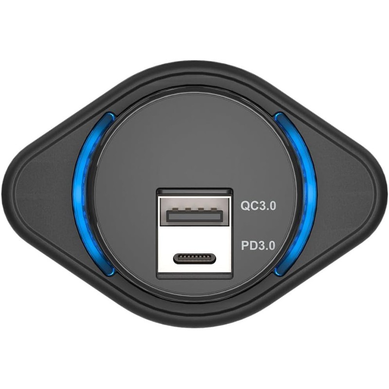12V Car USB Charging Socket, PD3.0 QC3.0 36W Dual USB Output Plate, Fast Charging Power Supply Socket with Blue LED for Motorcycles Boats Marine
