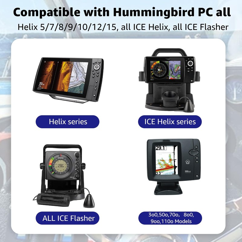 - Compatible Devices:Power Cord Solution for Humminbird Helix & ICE Series Fish Finders - Seamlessly compatible with ALL Humminbird Helix models, encompassing 411320-1CHO to 410190-1, as well as the Humminbird ICE lineup, including ICE Helix 411720-1 through 411790-1 and ICE Flasher 407020-1 to 407040-1.Additionally, it's fully compatible with all 300, 500, 700, 800, 900, and 1100 series models;