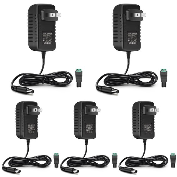 - 【Package Includes of LED Strip Power Supply】 5 x 12V 1A 24W LED power supply with a 3.93 ft power cord, 2 x 5.5/2.1 DC female barrel connector to screw adapter