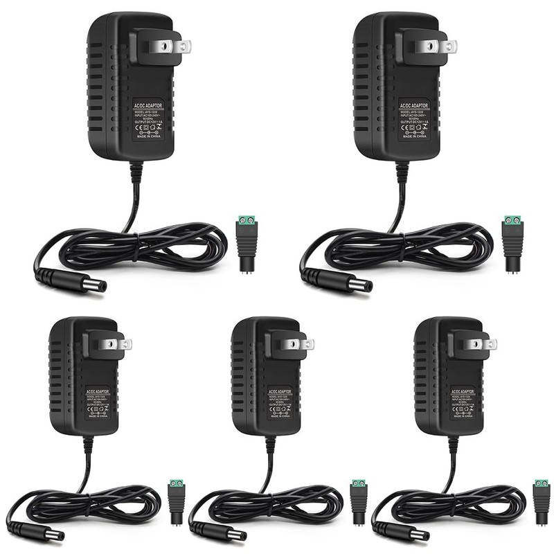 12V LED Power Supply, 12 Volt 1A 12W DC Power Supply, 100-240V AC to 12V DC Transformer, 12V Power Supply for LED Strip Lights, Wall Plug Power Adapter with 5.5/2.1 DC Female Connector (5 Pack)