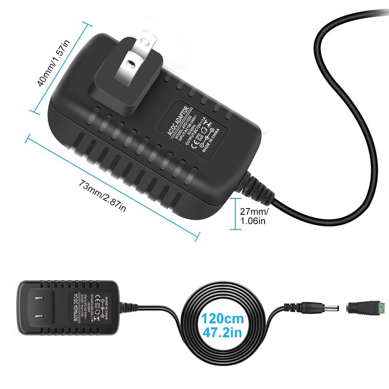- 【Wide Application of LED Power Supply】 12V 1A power supply, convert AC 110V to DC 12V, the 12 volt power supply is widely used for single color led strip or RGB light strip, string light, wireless routers, security camera, audio video power supply and other low voltage devices