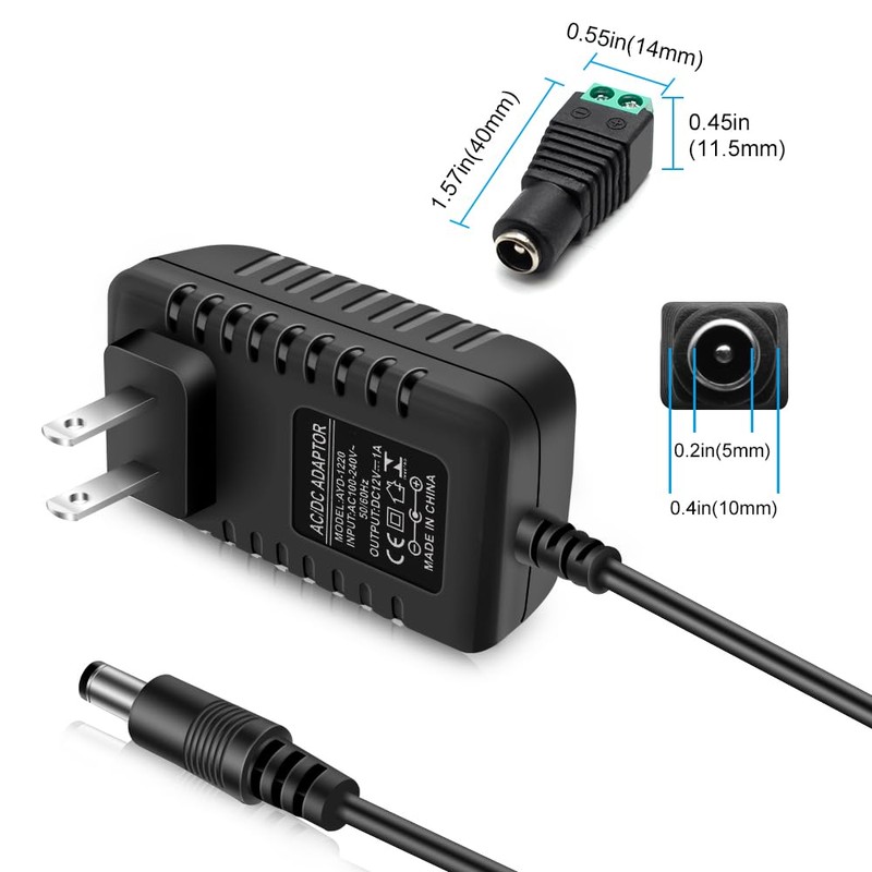 - 【Input & Output of 12V Power Supply】 12V 1A DC Power Supply, input: 100-240V AC; output: 12V DC 1A , 12 Watt max wattage