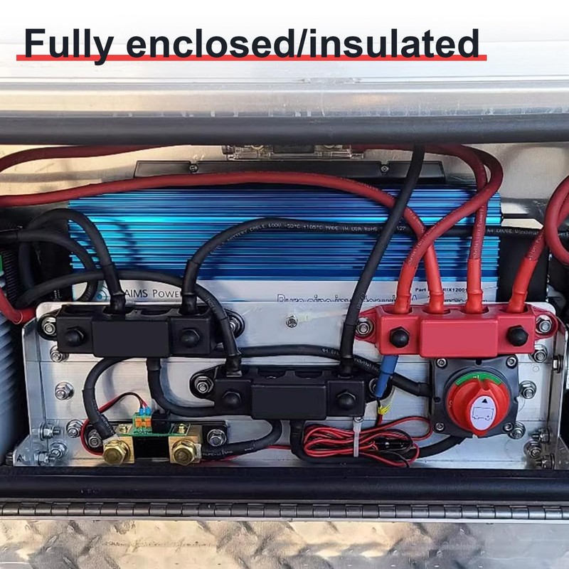 - A pair of 12V power distribution blocks, including a red and black block (Positive and Negative), come with a 4mm thicker copper bus bar plate, allowing connection to a wider range of cables