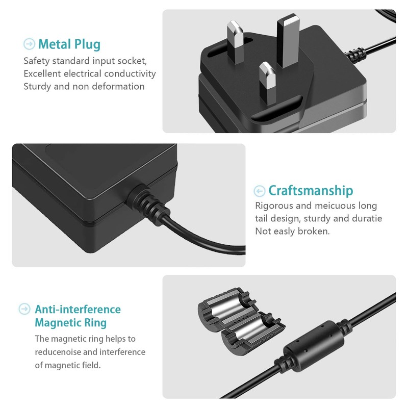 Mareisa 12V 2A power supply Certified by: CE, FCC, Rohs Safety Certificates Approved.
