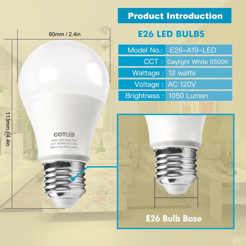 - Super Bright & High CRI for Natural Color: Our LED bulbs provide 6500K daylight white light, delivering a powerful 1050 lumens of brightness, perfect for any room. The high CRI 80+ ensures true-to-life color representation, ideal for enhancing your home’s decor, and perfect for holiday lighting setups. Whether you need light bulbs for your bathroom or living room, the A19 LED bulb 60W equivalent will bring out vivid, natural colors to enhance your Christmas tree or New Year’s Eve celebrations.