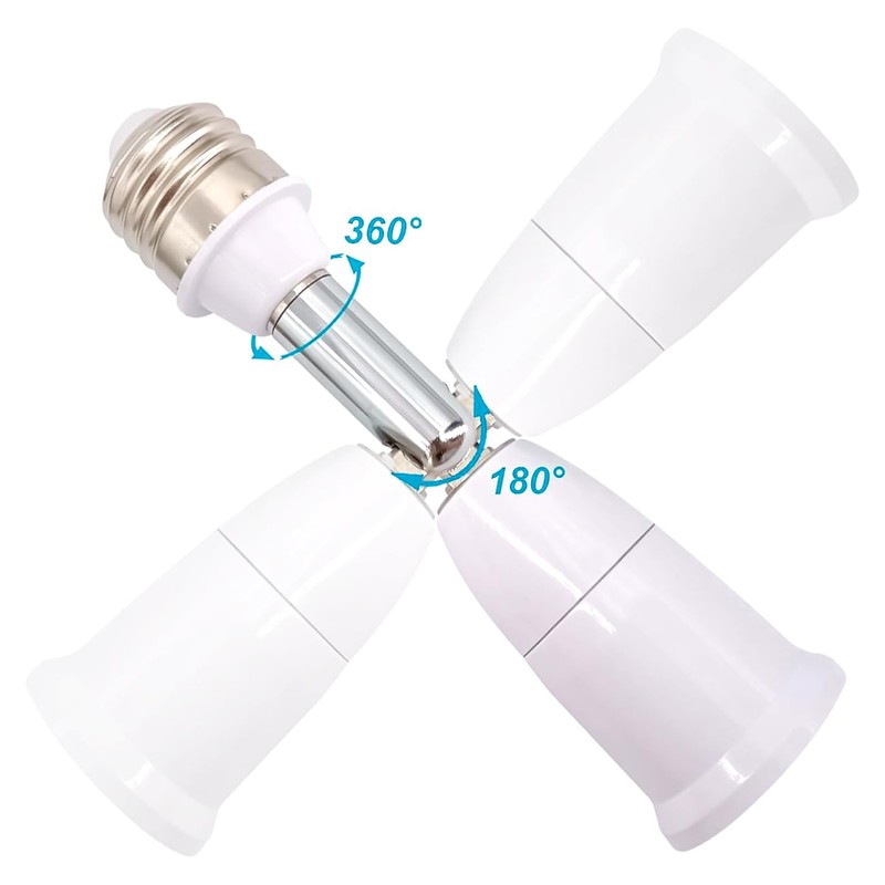• Extender Socket: Ideal for Standard E26 E27 socket. Total length 5.5 inch, Extended length 4.5 inch. Bending degree is 180, Horizontal 360°. The total length including the bulb is 8.4 inches.