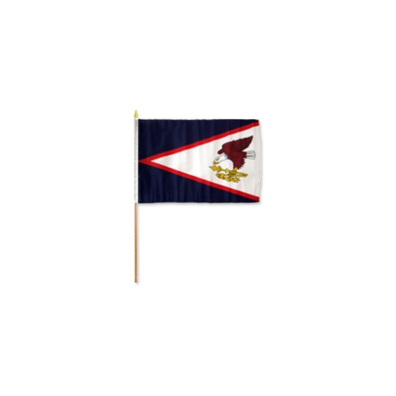 - 12x18 inch American Samoa flag mounted on a 24 inch (2 Foot) wooden stick staff (Super Polyester) Cloth Fabric (Sewn Edges for Durability) 12"x18"