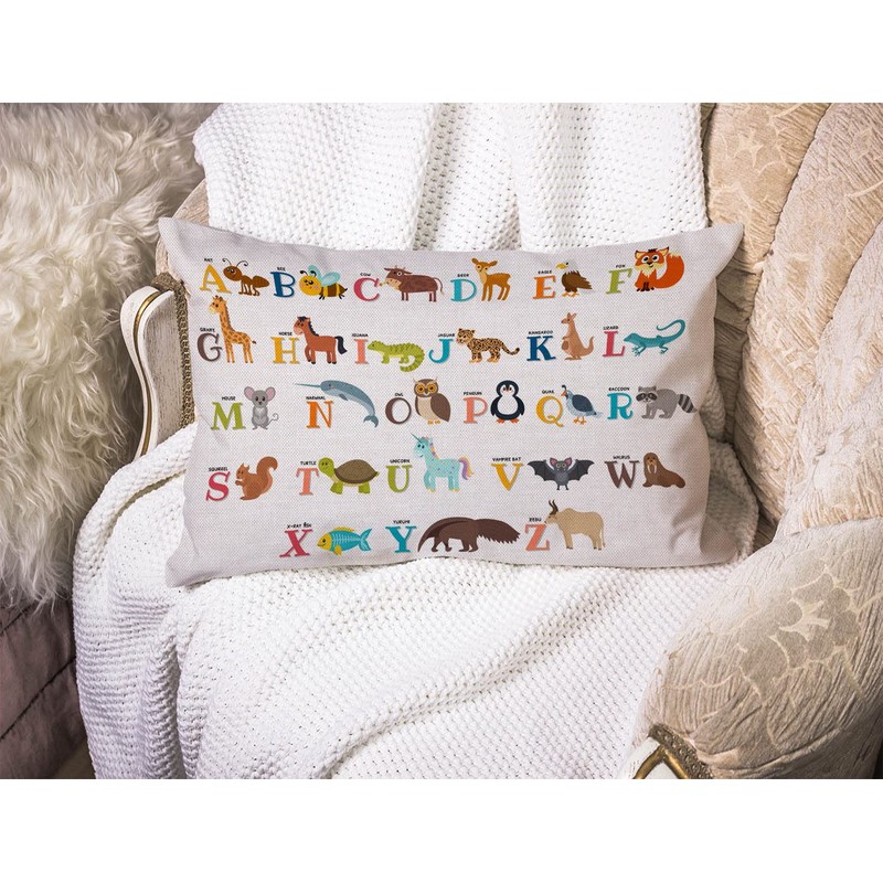 12X20 Inches Cushion Cover Rustic Farmhouse Decor Alphabet Cute Zoo with Animals Pillowcases Cotton Linen Alphabet Cute Zoo with Animals Throw Pillow Case Pillow Cover for Sofa Couch Bedro 30 x 50 cm