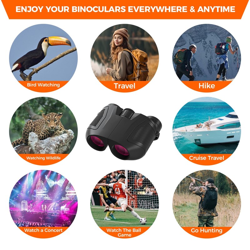 • WATERPROOF BINOCULARS & GIFT CHOICE : Daily waterproof & fog-proof body with non-slip textured surface, durable and portable in outdoors, suitable for use in any weather conditions.This pocket binocular is not only perfect as a gift for adult, but also as a gift for kids. A great gift idea for Birthday, Anniversary, Christmas etc.