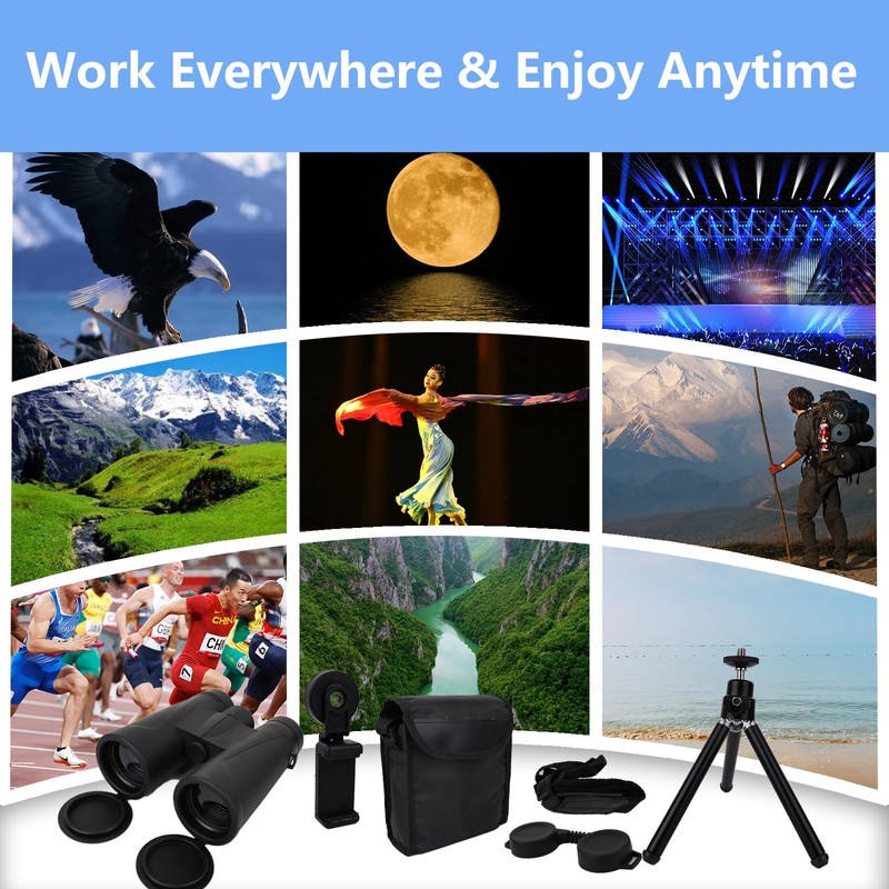 12x42 Binoculars for Adults High Powered with Phone Adapter and Tripod - Compact Waterproof Binoculars for Bird Watching Hunting Travel Hiking